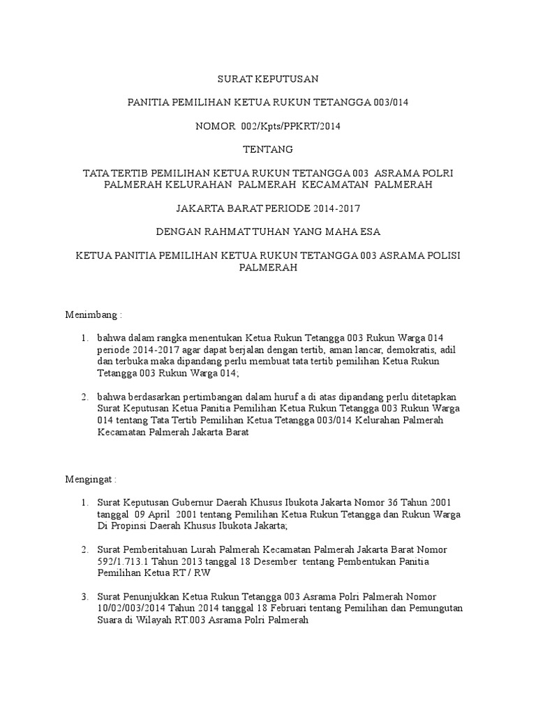 Contoh Sk Panitia Pemilihan Ketua Rt / Sk Panitia Pemilihan Rt Dibatalkan Warga Geruduk Kantor Lurah Patam Lestari - Google has many special features to help you find exactly what you're looking for.. Laporan keuangan pembangunan pos siskamling rt 01; 1 gedung radius prawiro lantai 9, jakarta pusat 10710 fax: Hormat saya, ketua rt 01. Search the world's information, including webpages, images, videos and more. Demikian surat undangan ini, atas kehadirannya kami ucapkan terima kasih.