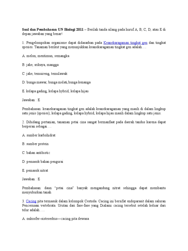 Soal un biologi sma dan pembahasannya pdf. Kalian dapat memiliki file pdf untuk persiapan usbn dan unbk di tahun 2020 2021. Untuk persiapan ujian nasional (unbk/unkp). 40 soal latihan unbk/usbn bahasa indonesia tingkat sma 40 soal latihan unbk/usbn bahasa inggris tingkat sma 40 soal latihan unbk/usbn fisika tingkat sma mata pelajaran biologi berdasarkan kata biologi, yaitu bio yang artinya makhluk hidup, dan logi atau logos yang artinya ilmu, yaitu ilmu yang mempelajari tentang makhluk hidup. Pembahasan soal un biologi sma tahun 2019 blog pak pandani.